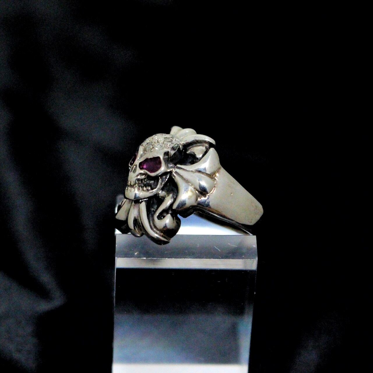 シルバー925で原型を作成し、天然ルビーを両眼へ、額へ天然ダイヤモンド。
