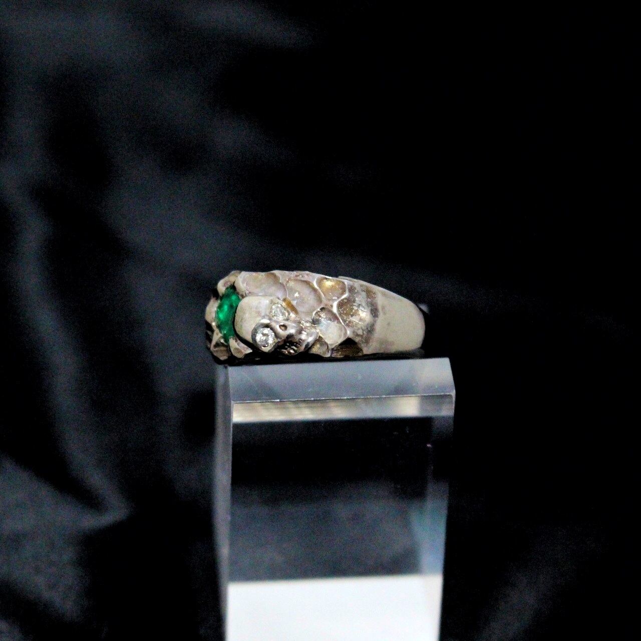 シルバー925で原型を作成し、天然のエメラルドに、ドクロを被せダイヤモンドを両眼へ。